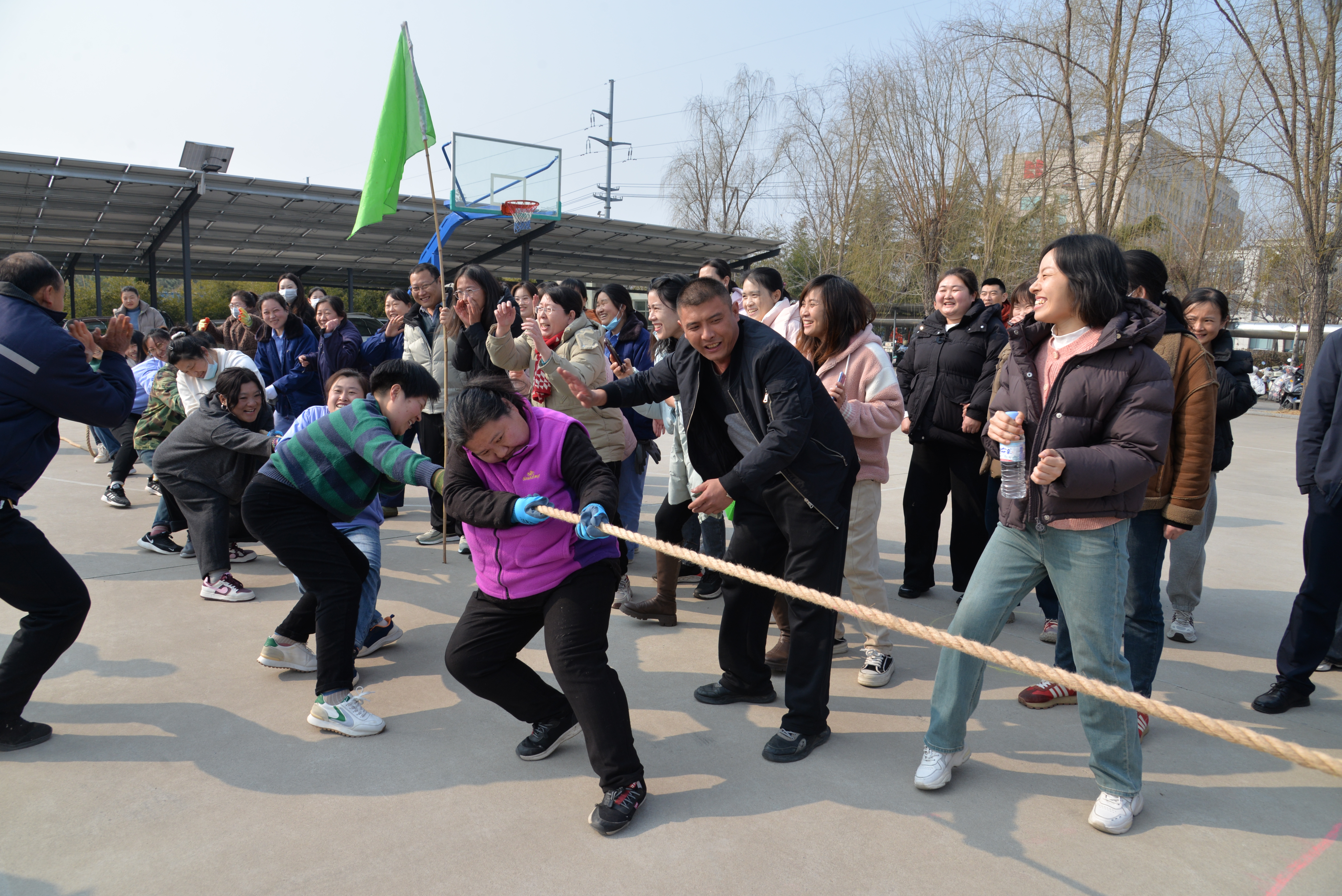 随后的拔河赛场,女职工们瞬间变身飒爽“女将”。随着裁判哨响,粗麻绳紧绷如钢,大家齐心协力,足蹬大地,身姿稳如磐石。啦啦队也热情高涨,加油呐喊声交织回荡。经过数轮角逐,六基层一队斩获拔河比赛一等奖。